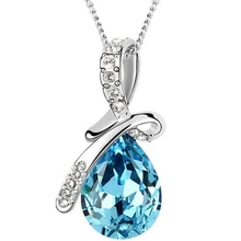 Free Shipping New Water Drop 18K White Gold Filled Fashion Austrian Crystal 10 Colors Pendant Necklace