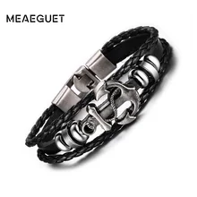 AliExpress.com Product - Meaeguet Vintage Men's Durable Braided Leather Bracelets Anchor Steel Charm Bangle Cuff Pulsera Ancla Jewelry Pulseiras